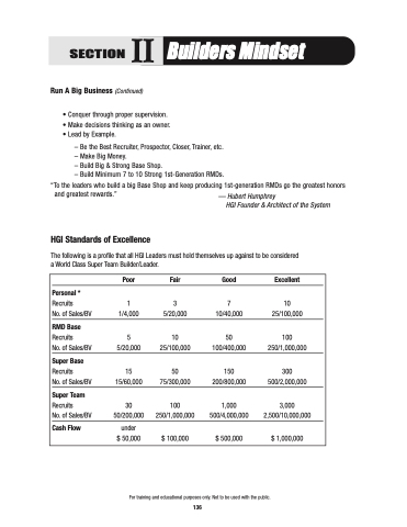 The following is a profile that all HGI Leaders must hold themselves up against to be considered a World Class Super Team Builder/Leader.